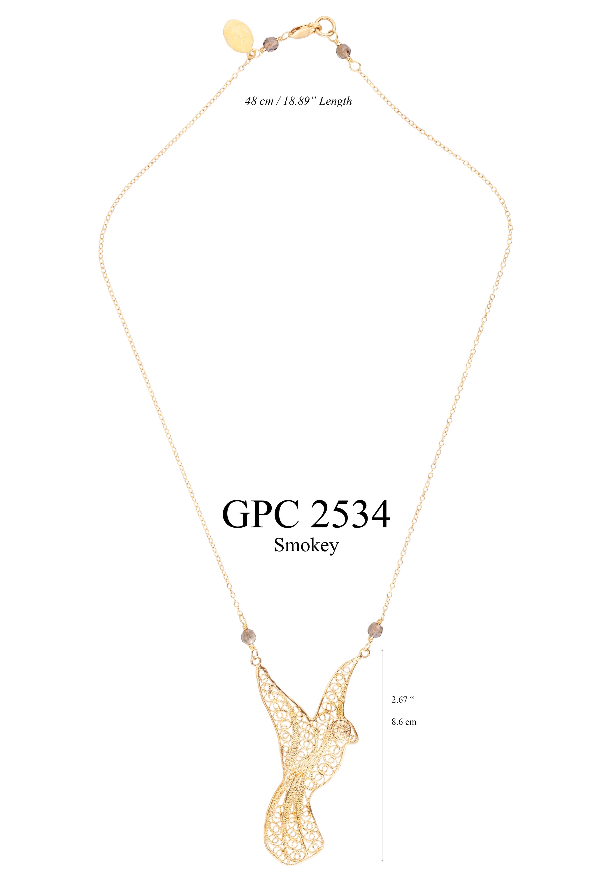 Handmade in 18K gold over .925 silver. Height: 8.6 cm. Chain: 45cm All measurements are approximate as every piece is handmade.